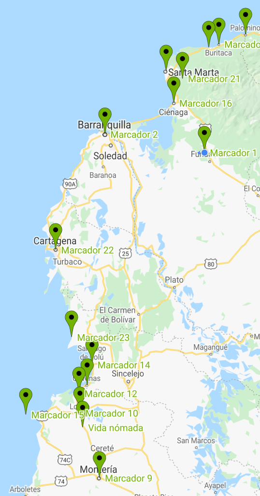 La vida nómada ha traído algo que nunca antes tuve al viajar: tiempo indeterminado. Mis viajes de antes tenían fechas de inicio y de regreso más o menos fijas e inamovibles. Por lo general viajaba en vacaciones de Semana Santa y de fin de año. Ahora, como nómada digital, viajo cuando quiero sin importar qué día es o en qué mes estamos. El calendario laboral ya no me limita. Quizás por eso he descuidado el trazado de la ruta al ir y volver más de una vez a algunos destinos, como Montería, Santa Marta y Minca.